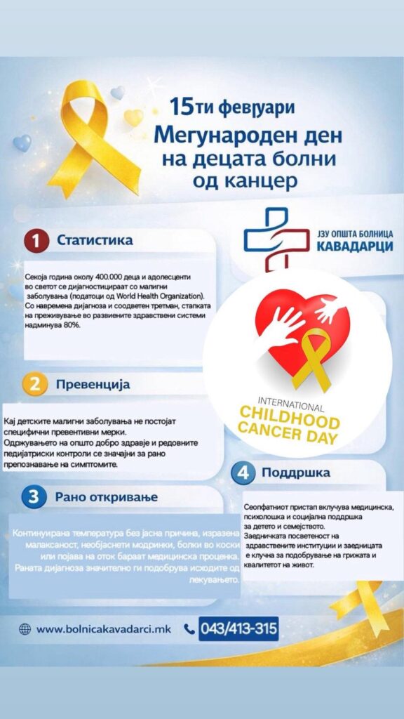 Денес го одбележуваме денот посветен на подигање на свеста за детскиот рак и на изразување поддршка кон децата кои се соочуваат со оваа болест, како и кон нивните семејства и здравствените работници.